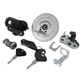 Kit completo serratura con cilindretti, doppie chiavi, tappo serbatoio per unificare le chiavi.