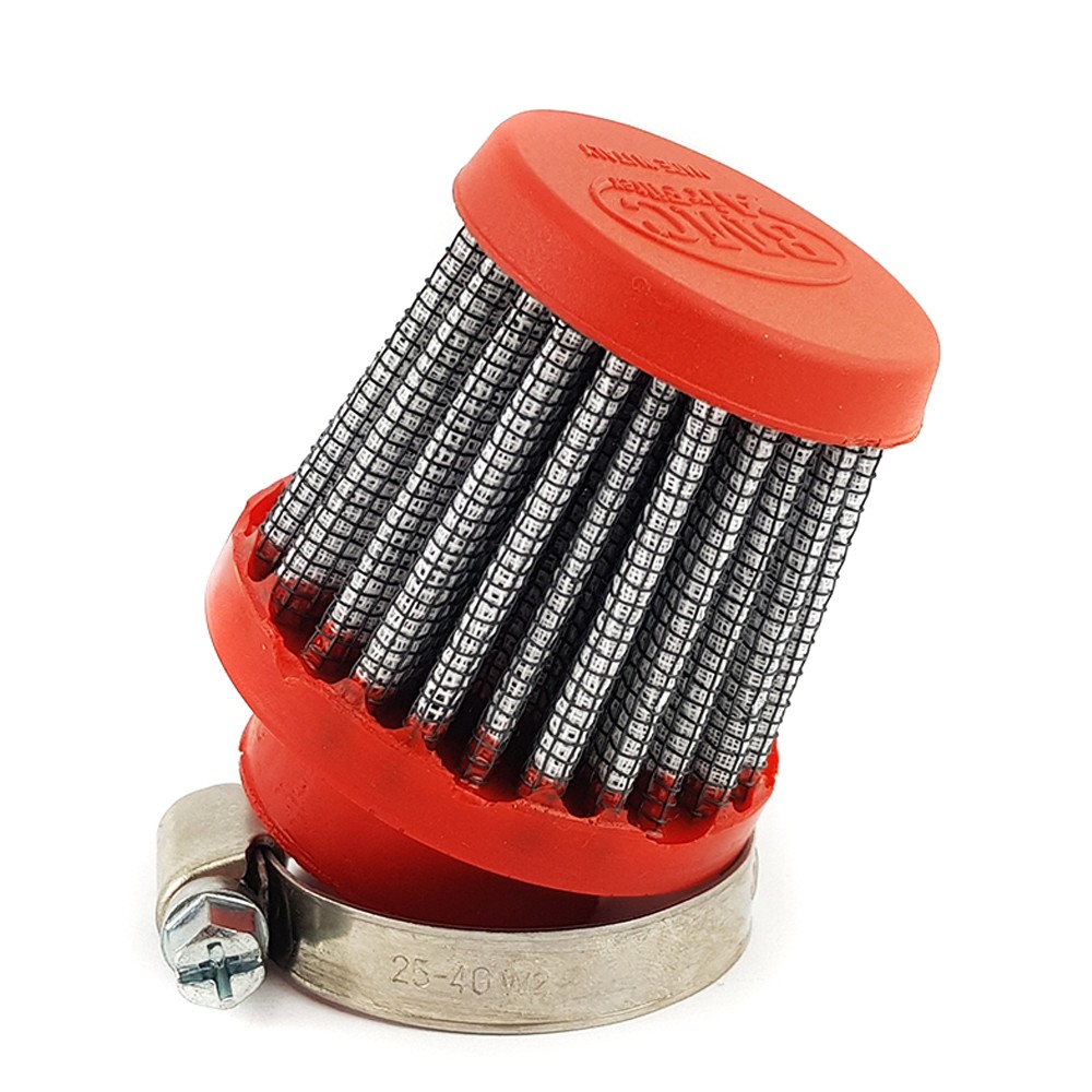 I filtri aria conici BMC per aspirazione diretta, possono essere installati su ogni tipo di auto eliminando la scatola filtro originale. I filtri aria conici BMC per aspirazione diretta, vengono realizzati con la caratteristica gomma rossa che permette al manicotto di imbocco di essere particolarmente resistente sia alle sollecitazioni meccaniche sia a quelle termiche senza subire deformazioni a causa della temperatura. La rete speciale utilizzata nell'elemento filtrante consente di costruire filtri aria per applicazioni con potenze fino a 700 CV senza presentare problemi di deformazione del filtro in aspirazione.