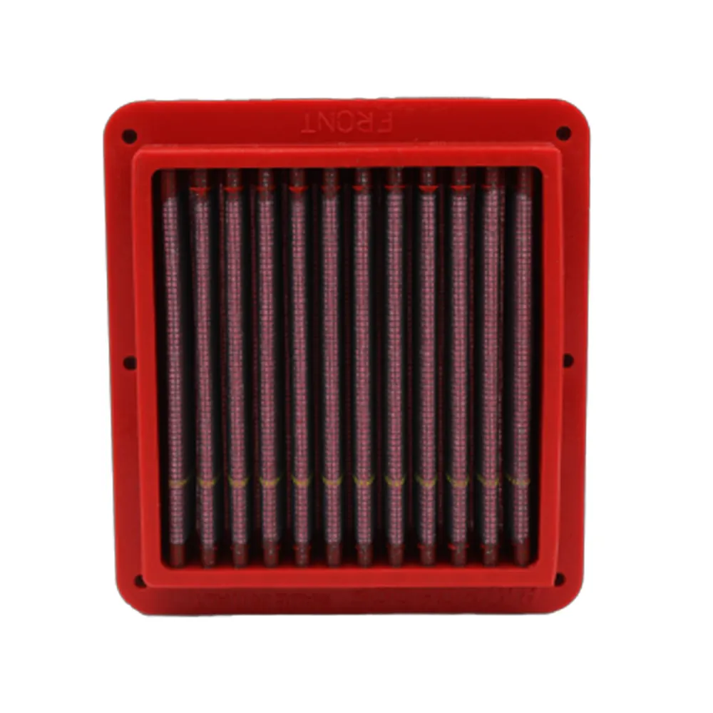 Il filtro aspirazione BMC è costituito da un tessuto multistrato di cotone imbevuto d'olio a bassa viscosità, inserito fra due strutture reticolate di alluminio. Le reti in alluminio sono trattate con resina epossidica in modo da proteggerle dall'ossidazione causata dai vapori del carburante e dall'umidità presente nell'aria. Vengono installati nell'airbox in sostituzione del filtro aria originale.
