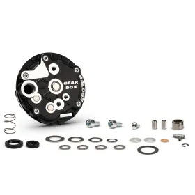 Ottimizza l’alloggiamento ingranaggi e il funzionamento della ganascia freno grazie a superfici lavorate dedicate, 5 viti di chiusura (una in più rispetto all’originale) e boccole di centraggio concentriche. Fornito completo di cuscinetti, paraoli, viti e rasamenti, pronto per il montaggio con ingranaggi Malossi (compatibile anche con originali).