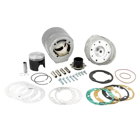 Il cilindro è dotato di una camicia da circa 8 mm, progettata per offrire un’ottima guida al pistone anche con configurazioni in corsa 62 e 64 mm, tuttavia presenta un diametro esterno maggiore rispetto al cilindro originale, rendendo necessaria una lavorazione sui carter: bisogna barenare l’imbocco carter a 76 mm per 8 mm di profondità (con la dima in dotazione).