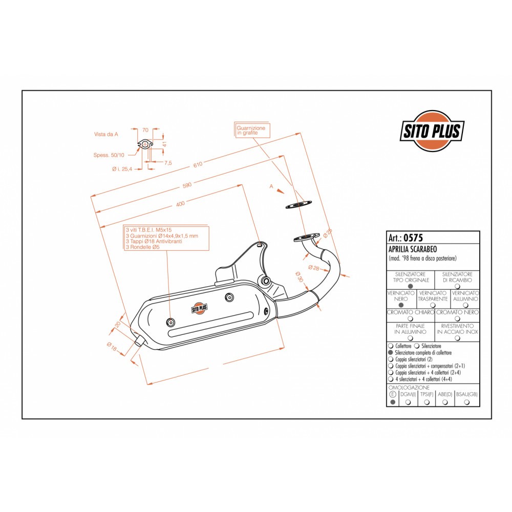 SITOPLUS per Aprilia Scarabeo 50 è la linea di marmitte destinate ai ciclomotori ed agli scooter più venduti in Europa che, pur essendo esteticamente identiche a quelle montate all'origine, sono totalmente riprogettate nella struttura interna e garantiscono ai motori un rendimento superiore, soprattutto ai regimi medio-bassi.