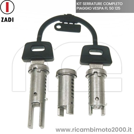 KIT SERRATURE 3 CILINDRETTI 2 CHIAVI ORIGINALE ZADI PIAGGIO VESPA PK FL 50 125 SISTEMATO CIF