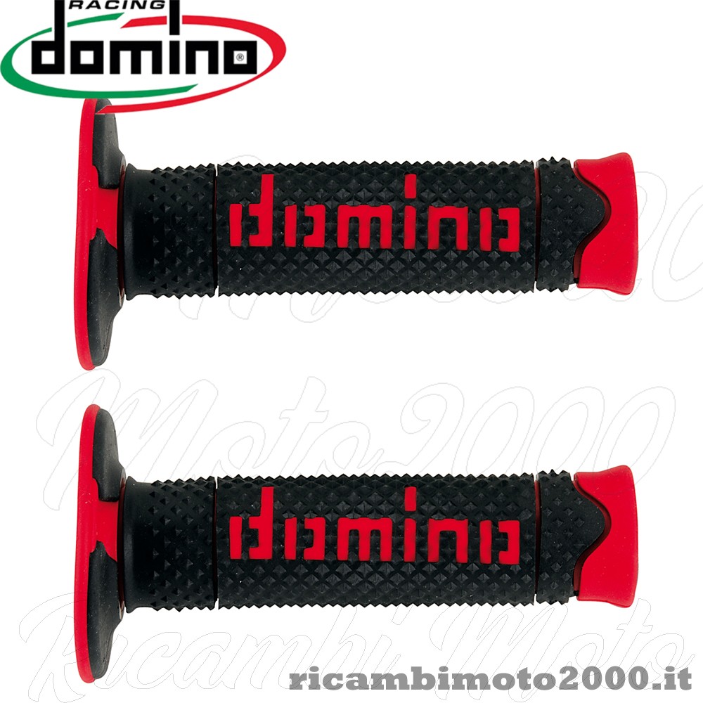 Coppia Manopole Domino Offroad Nere Rosse Universali Motocross Enduro Offroad